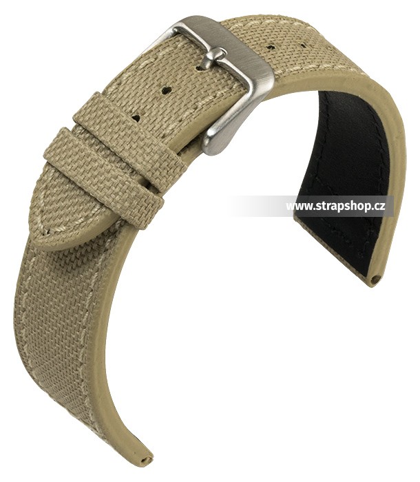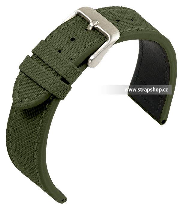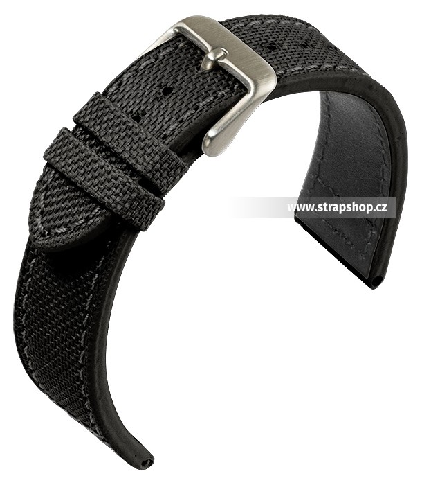 Voděodolný řemínek s texitním povrchem. Vyrobený tradičním procesem Vollumbugg. Vhodný pro všechny typy sportovních i fashion hodinek. Klasika jak pro běžné nošení, tak i pro extrémní podmínky. Řemínek je podšitý syntetickou kůží Lorica® - porézní umělá kůže, dovolující průchod vzduchu. Matná přezka z nerezové oceli.