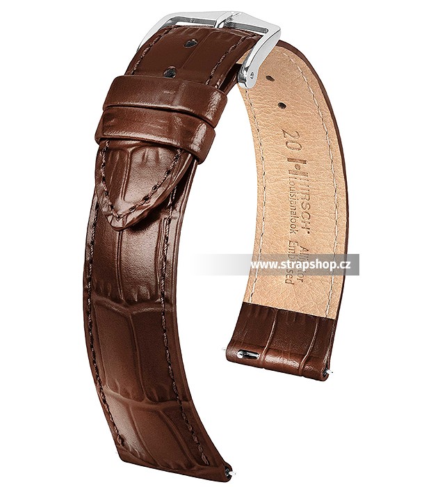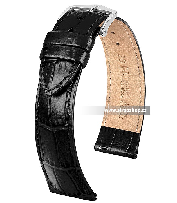 Ěemínek z teletiny se vzorem krokodýlí kůže a nekontrastním prošitím v klasických barvách, vhodný zejména pro formální příležitosti. Díky podšívce Softglove je řemínek odolný vůči vodě a potu. Řemínek je vybaven speciálními rychloupínacími stěžejkami.