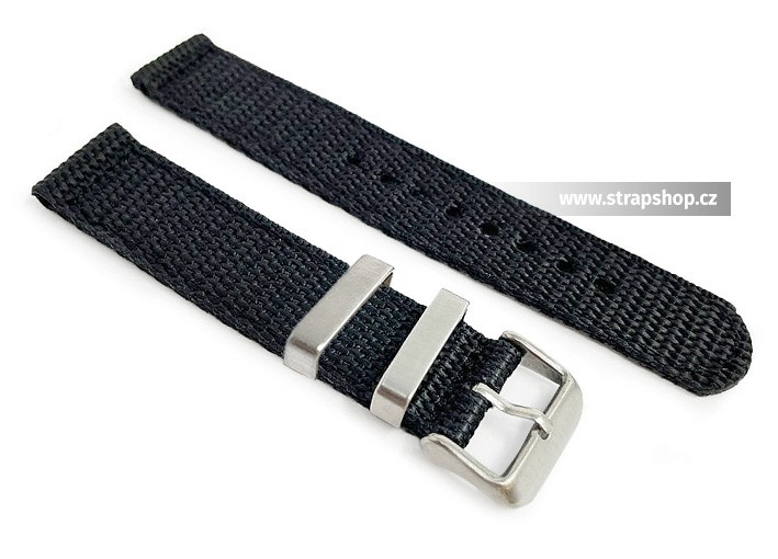 Tkaný, pevný nylonový řemínek s poutky a přezkou z broušené nerezové oceli. Styl "NATO" bez nutnosti provlékání řemínku pod spodní částí hodinek. Vynikající voděodolný doplněk pro klasické i chytré hodinky (např. Apple Watch, Samsung, Garmin) a hodí se jak pro každodenní nošení, tak i pro extrémní sportovní aktivity.